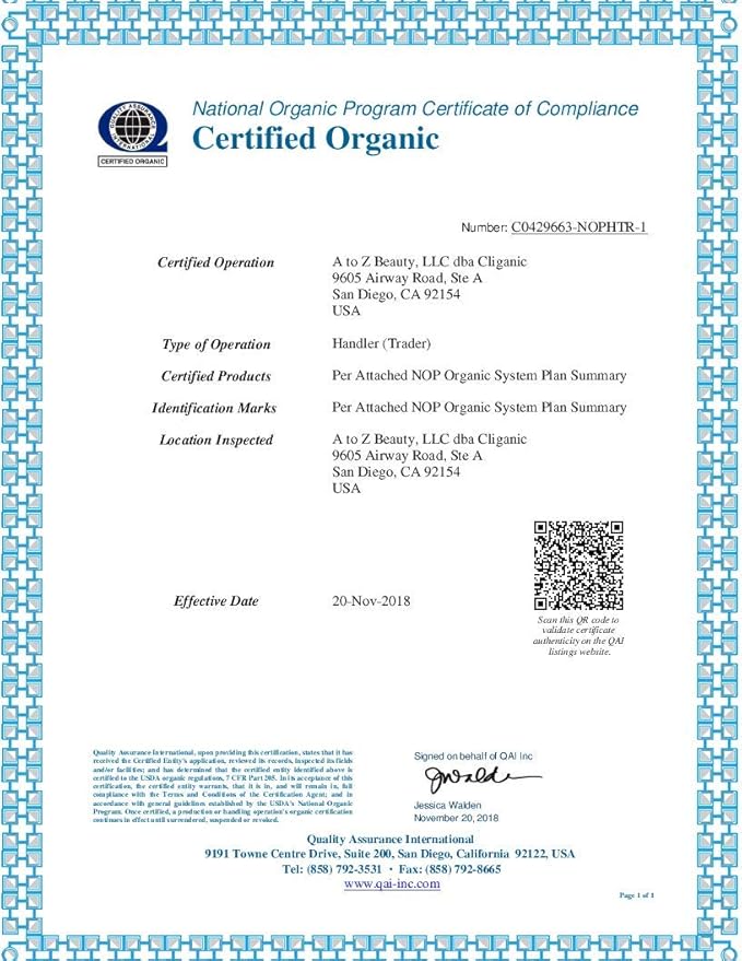 - Certified Organic Jojoba Oil - Cliganic organic jojoba oil is proudly USDA organic certified to ensure ultimate quality and integrity.