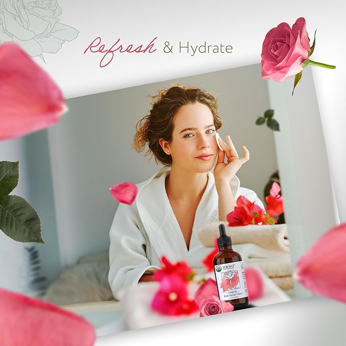 HBNO California Bottled Organic Rose Water for Face 4 fl oz (120ml) - USDA Certified Organic Rose Water Spray for Face - Pure Rose Water for Hair - Rosewater Face Mist, Rose Water Spray for Cleansing