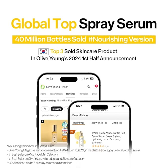 d'alba Piedmont Italian White Truffle First Aromatic Spray Serum, Fragrant VEGAN Glowy Antioxidant Face Mist, Deep Hydration Skin Firmness, Korean Skin Care (4.05 fl.oz)