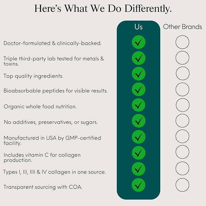 - TRIPLE LAB-TESTED FOR HEAVY METALS & TOXINS + SUSTAINABLE SOURCING – Our marine collagen powder is triple FDA third-party lab-tested for purity, potency, and heavy metals, and is made in the USA in a cGMP-compliant facility. We use only wild-caught, sustainably sourced fish collagen peptides and disclose all ingredient origins. Backed by clinical testing, our collagen offers superior bioavailability for fast, visible results.